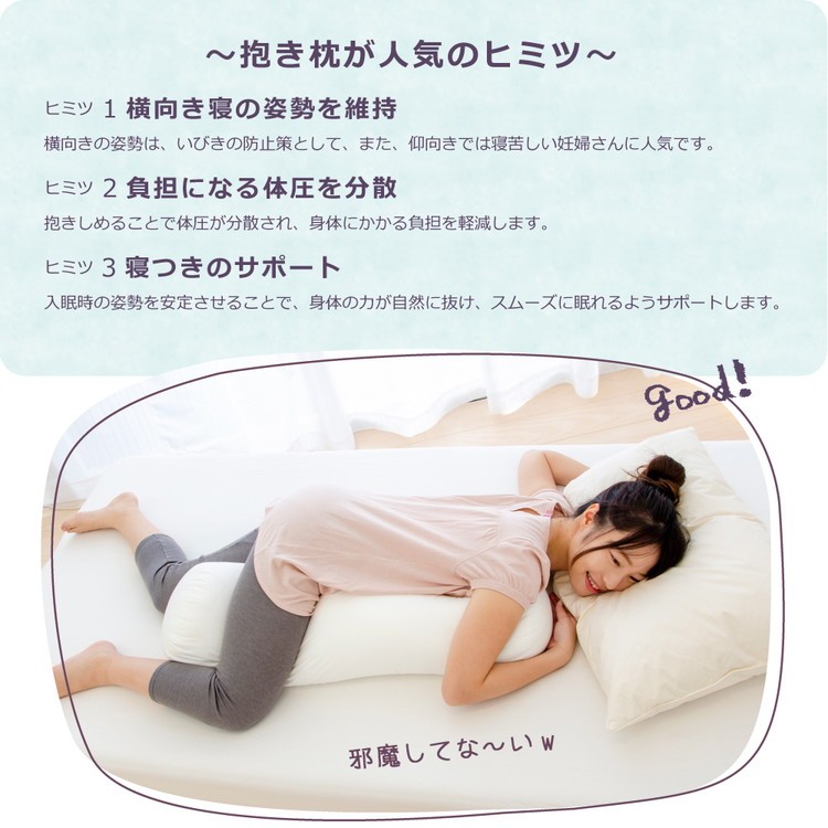 「邪魔にならない抱き枕」は、枕と併用する際、"邪魔にならない"サイズが嬉しい円柱型(ボルスター型)の抱き枕です。