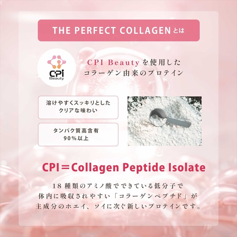 健康食品だからと言って、味に妥協はありません。CPIプロテインは美味しさにもこだわり、飲むことが楽しみになること間違いなし!コラーゲンペプチド由来をいかし、飲みやすくてクリアな味にこだわりました。