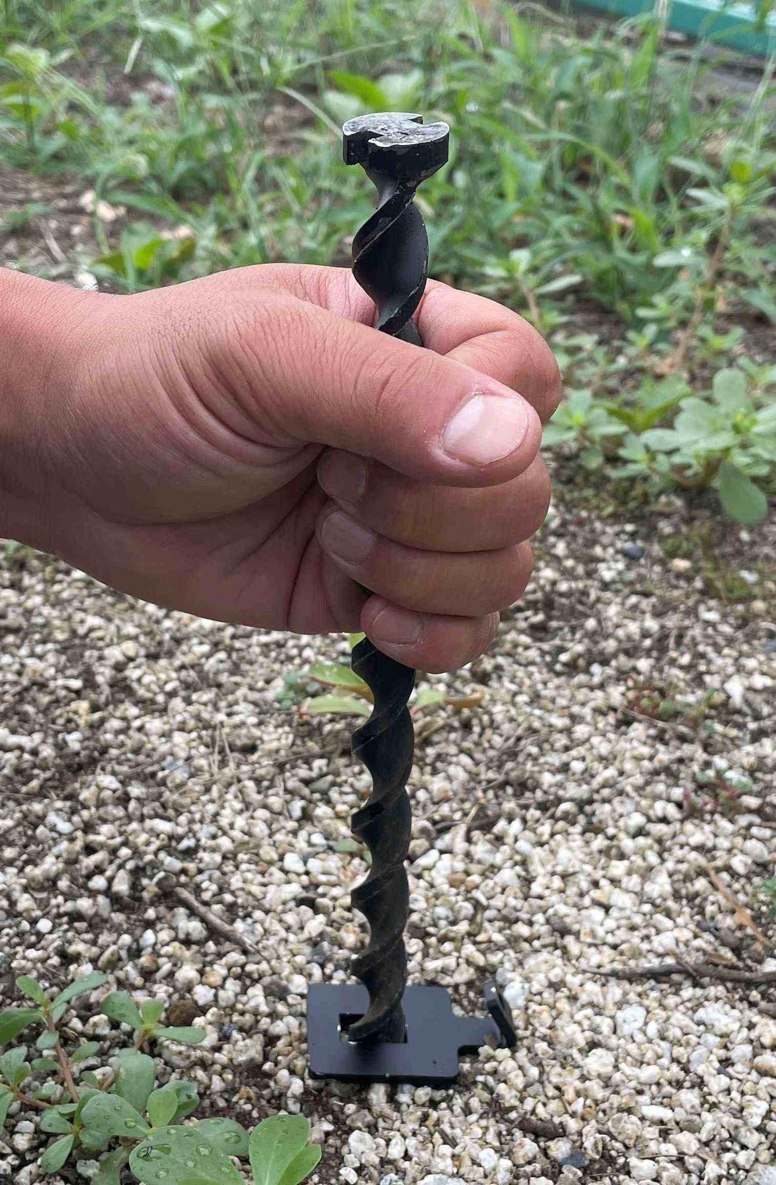 このスパイラル形状により、ガイドプレートに沿って地面に垂直に打っていくと回転して打ち込まれます。