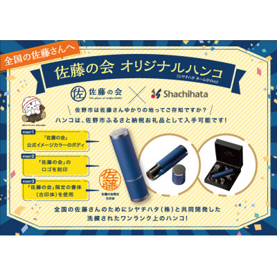 佐藤の会が全国最多で200万人いるとされる佐藤さんのためにシヤチハタ(株)(愛知県名古屋市)と共同開発した、