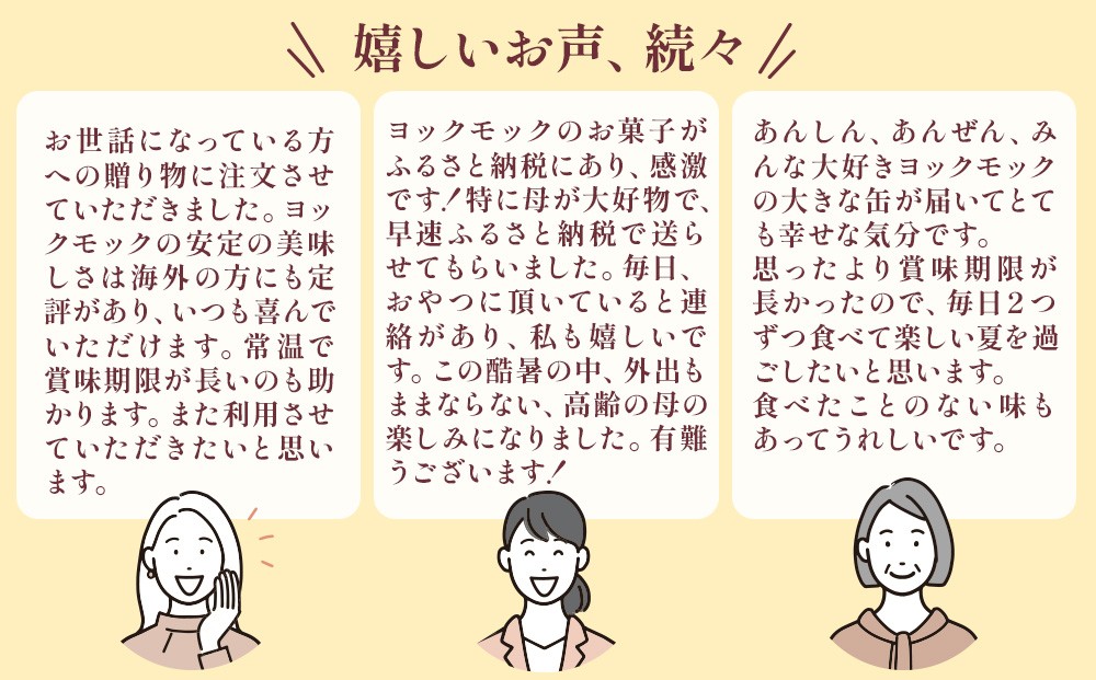 ヨックモックはどれもおいしいですが、これはいろいろな種類が楽しめて、とくにおすすめです。きれいに包装された状態でとどきますので、手土産にも適しています。