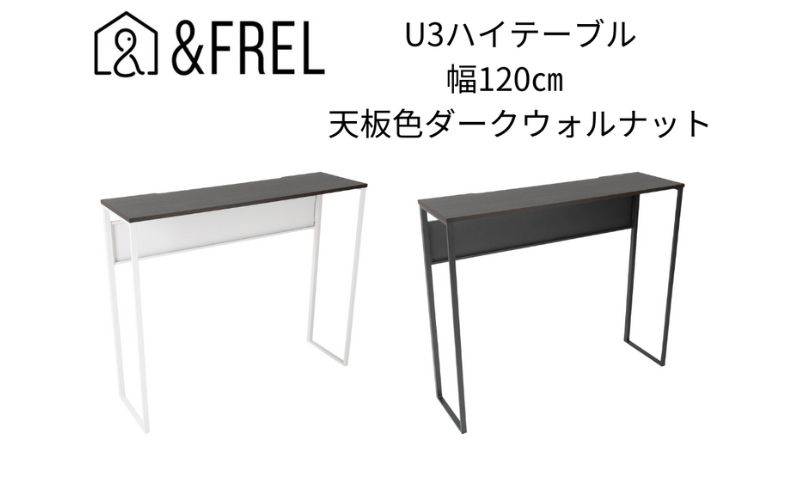 【&FREL】U3ハイテーブル1235 天板ダークウォルナット 幅120 奥行35 高さ100【ブラック】【ホワイト】 国産家具 組立簡単 [№5840-2414] ※離島への配送不可