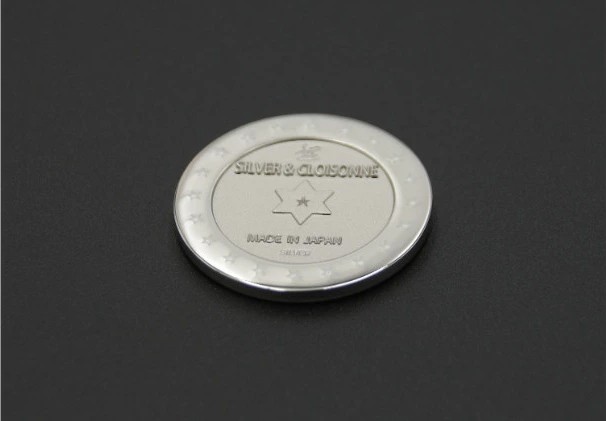 ゴルフマーカーは、純銀の素地に伝統工芸「七宝焼」をあしらい、ロジウムメッキ仕上げ。直径28mm、厚み2.3mmの美しい佇まいで、ラウンドのひとときに“工芸の輝き”を添えます。