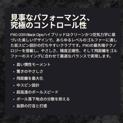 PXG 0311 BLACK OPSハイブリッドはクリーンかつ空気力学に基づいた美しいデザインで、あらゆるレベルのゴルファーに適した低スピン設計の打ちやすいクラブです。