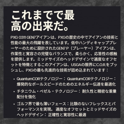 PXG 0311 GEN7 XPアイアンはヘッドサイズとオフセットが大きめの設計になっており、驚くほど柔らかい打感、究極の飛距離性能、