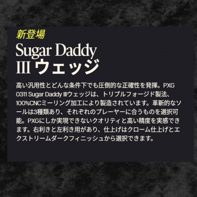 PXG 0311 Sugar Daddy IIIウェッジは、トリプルフォージド製法、100%CNCミーリング加工により製造されています。