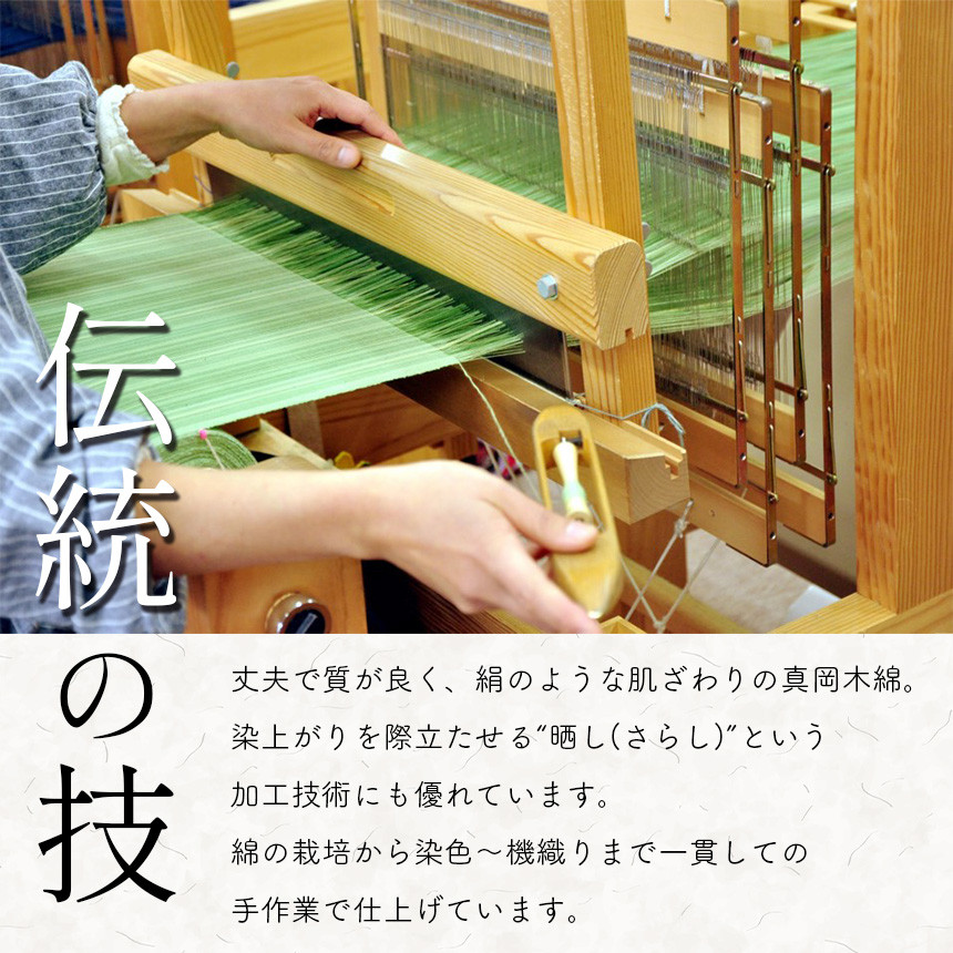 綿の栽培から染色~機織りまで一貫しての手作業で仕上げています。