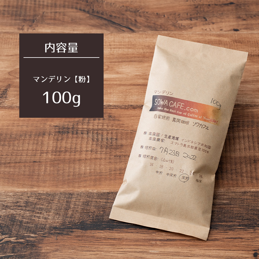 自家焙煎 真岡珈琲 マンデリン 100g 【粉】 (焙煎日明記)