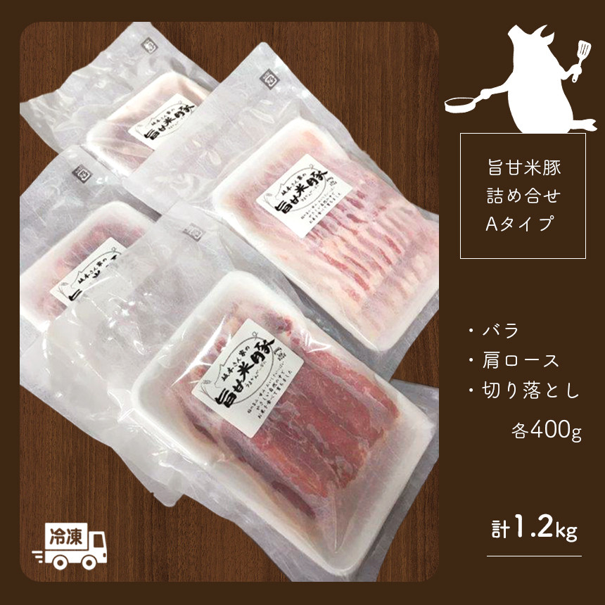 旨甘米豚 詰め合せAタイプ( バラ ・ 肩ロース ・ 切り落とし ) 計1.2kg