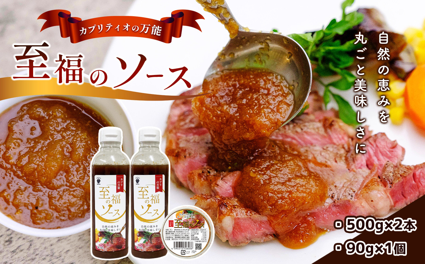 万能 ステーキ ソース 自然の恵みを丸ごと美味しさに! 自然の恵みを丸ごと美味しさに!カプリティオの万能「至福のソース」500g×2本、90g×1個 栃木県 真岡市 送料無料