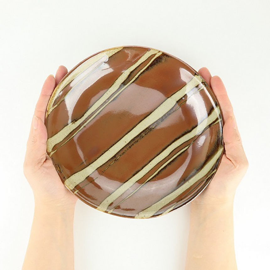 【栃木県共通返礼品・益子町産】しのぎ_ブラウンマット 7寸平皿…