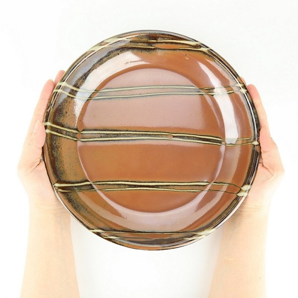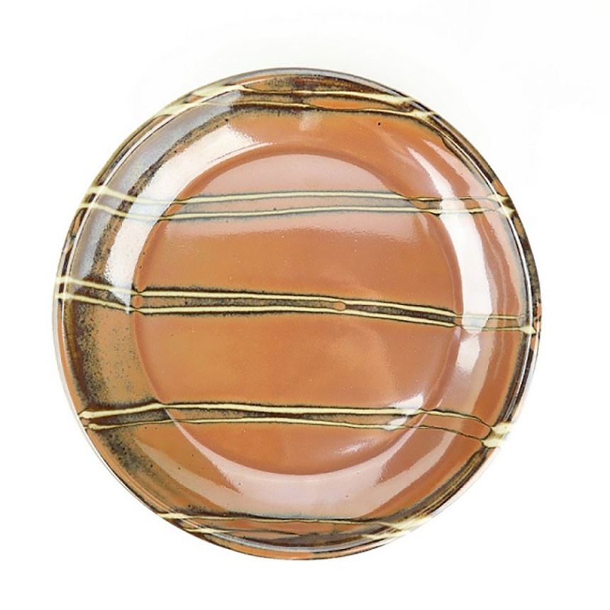 「益子焼」の陶芸家 萩原芳典 氏作 益子焼 柿釉線紋平鉢 【栃木県共通返礼品・益子町産】益子焼 萩原芳典 柿釉線紋平鉢