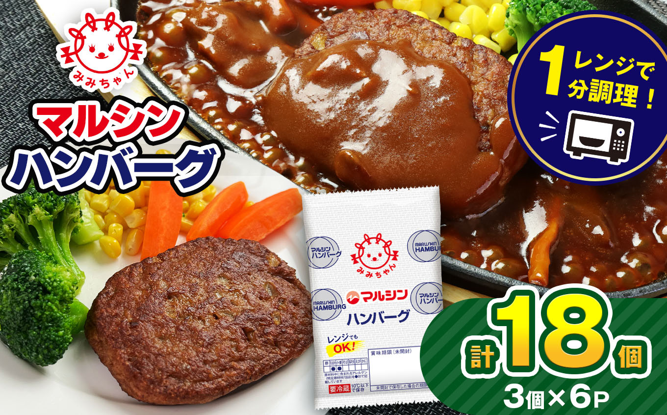お弁当に大活躍!パンに挟んでハンバーガーも簡単に! マルシンハンバーグ18個 (3個×6P)| レトルト インスタント 人気 おかず ごはん 手軽 冷蔵 レンジ 調理 肉 加工品 オススメ 真岡市 栃木県 送料無料