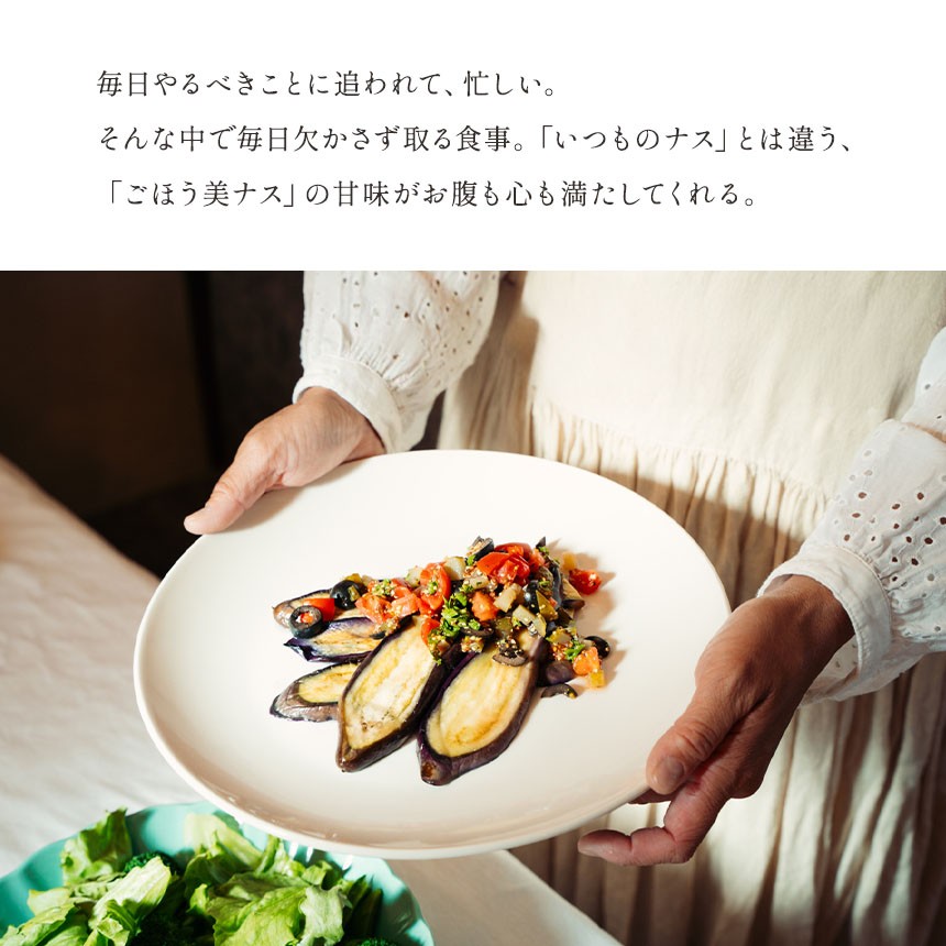 ハーティッチファームのオリジナルブランド「ごほう美ナス」は、“普段の食卓に ちょっとだけ「ご褒美」を”をコンセプトにつくられました。