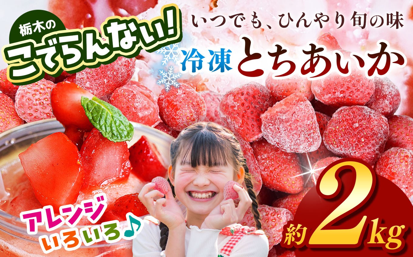 農家の朝摘み、厳選された完熟いちごを冷凍しました。 栃木のこでらんない冷凍イチゴ(とちあいか) 選べる 容量 定期便 1回 3回 約2kg|いちご イチゴ 果物 フルーツ 苺 甘い 美味しい とちあいか 大粒 ジューシー 映え 産地直送 栃木県 真岡市 朝摘み 酸味が少ない 冷凍いちご 日本一