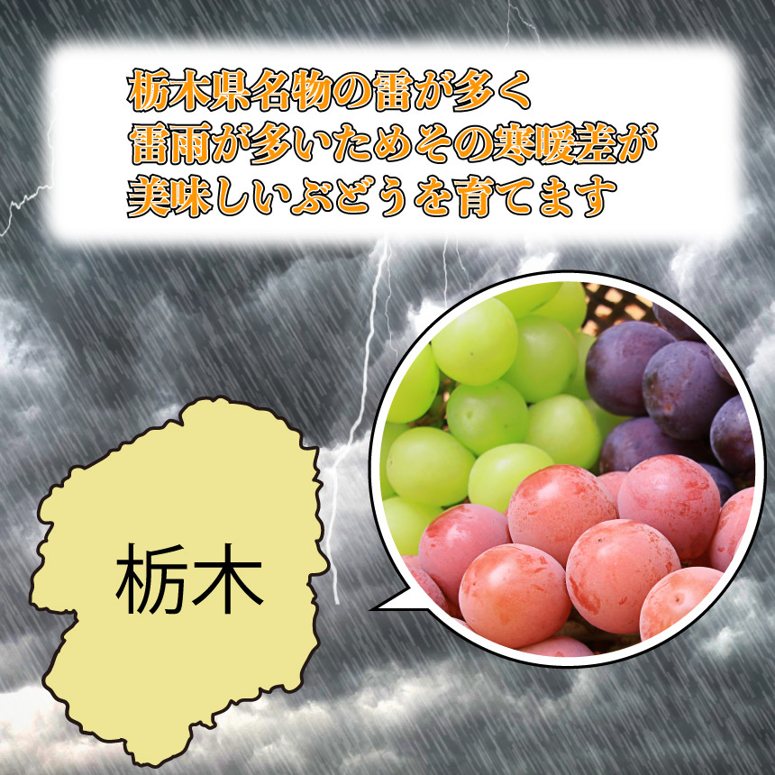 栃木県名物の雷が多く、雷雨が多いためその寒暖差が美味しいぶどうを育てます。