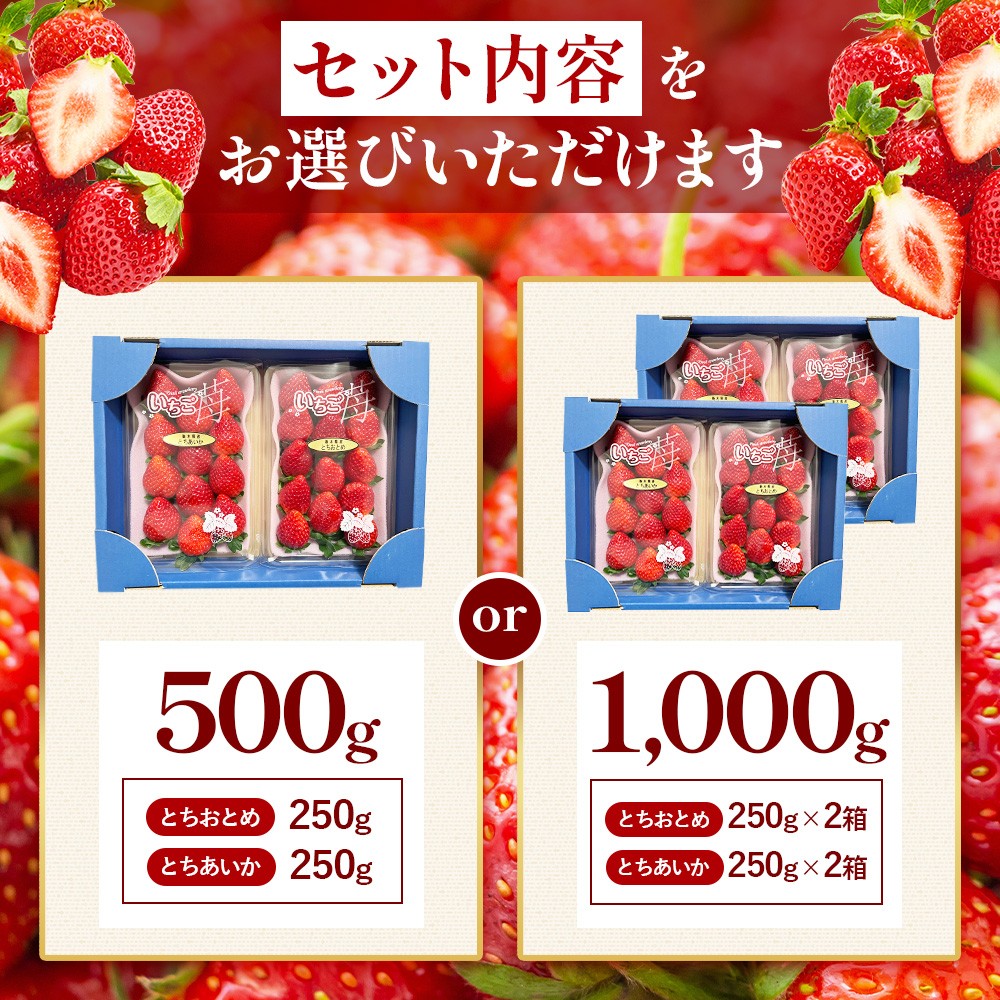 いちご とちおとめ・とちあいか 500g 1000g 食べ比べ セット | …