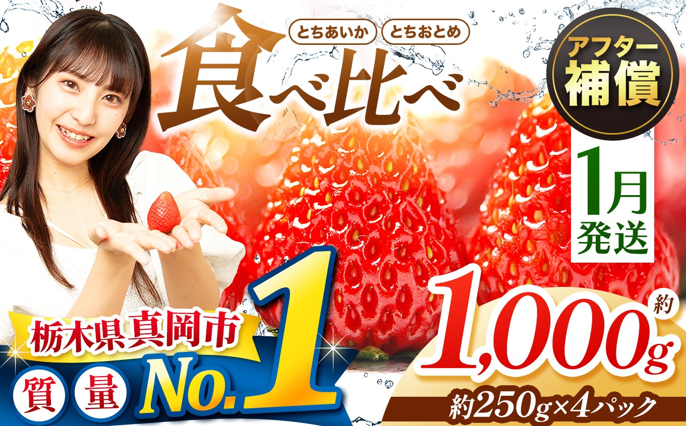 【1月発送】いちご とちおとめ・とちあいか 1000g 食べ比べ セット | 苺 イチゴ おいしい 甘い 人気 いちご日本一のまち 栃木県 真岡市 農林水産大臣賞最多受賞 ストロベリー 苺 人気品種 送料無料