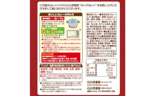 容量 | レトルトポークカレー(220g×10個) レトルト野菜カレー(220g×10個) レトルトキーマカレー(180g×10個) |