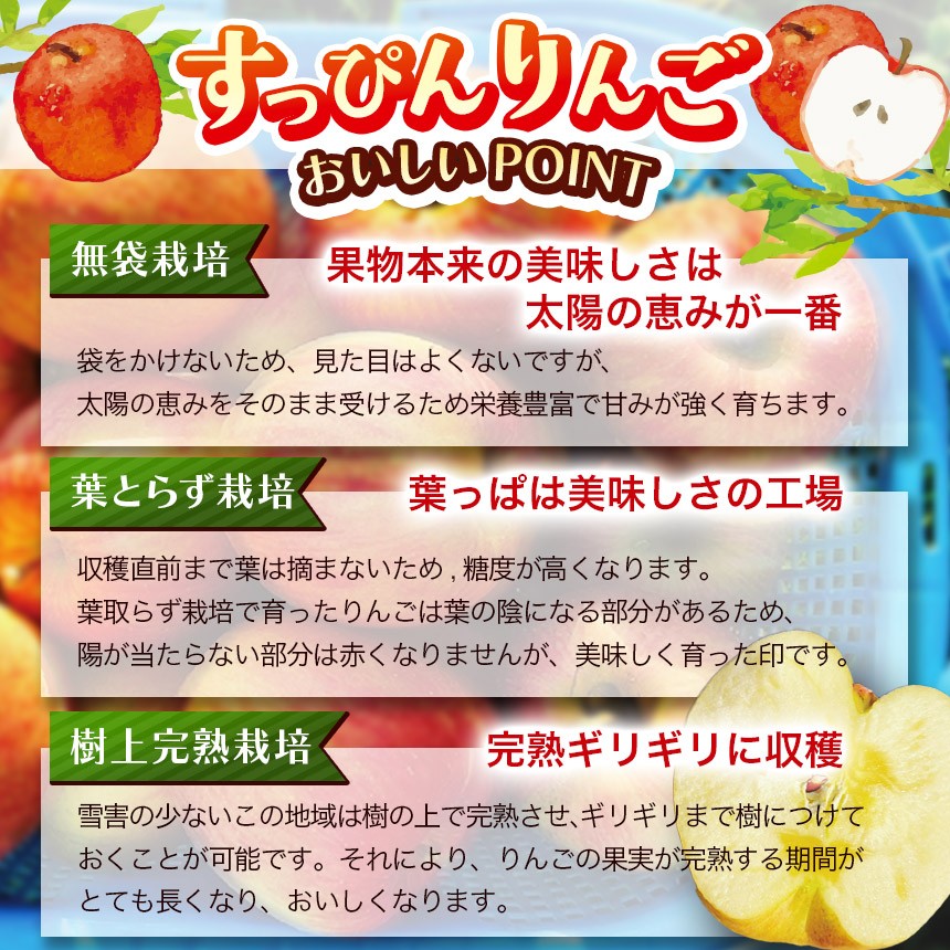 「美味しい」と感じていただけるりんごを届けたいという想いで、日々畑に向き合っています。自然相手のため思い通りにいかないこともありますが、その分、収穫の喜びは格別です。食べる方の笑顔を思い浮かべながら、一つひとつ丁寧に育てた自慢のりんごを、ぜひご家庭でお楽しみください。