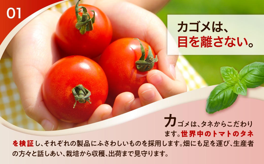 発売当初からジュースに適したトマトの品種改良や技術革新を重ね、契約農家とともに安定的な栽培に取り組み、どんな時代に変わっても、決して変わることのない、おいしさと健康価値を守ってきました。