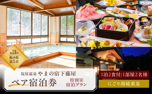 【平成温泉番付】栃木県第1位 にごり湯と美食 塩原温泉 やまの宿下藤屋 特別室宿泊プラン ふるさと納税ペア宿泊利用券(1泊2食付き) 54,000円券【 旅行 体験・チケット 栃木県 那須塩原市 】 ns018-003