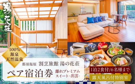 塩原温泉【離れプレミアムスイート・出雲】100%源泉かけ流し温泉と月替りのこだわり懐石コース1泊2食付き・ペア宿泊券【割烹旅館湯の花荘】 ns014-001 【温泉 宿泊券 チケット 旅行】