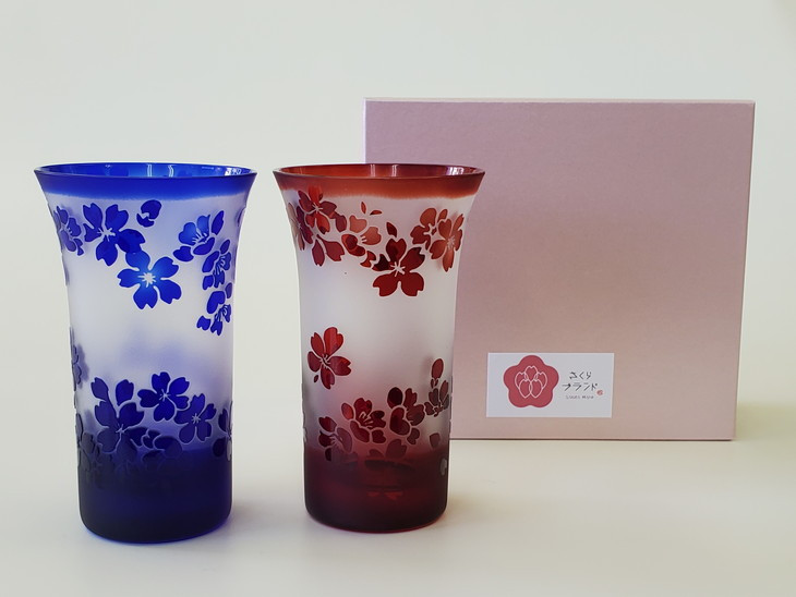 高級感あふれる祝賀のグラスです。 「さくらブランド認定」サンドブラスト【桜 色被せグラス】ペアセット※着日指定不可