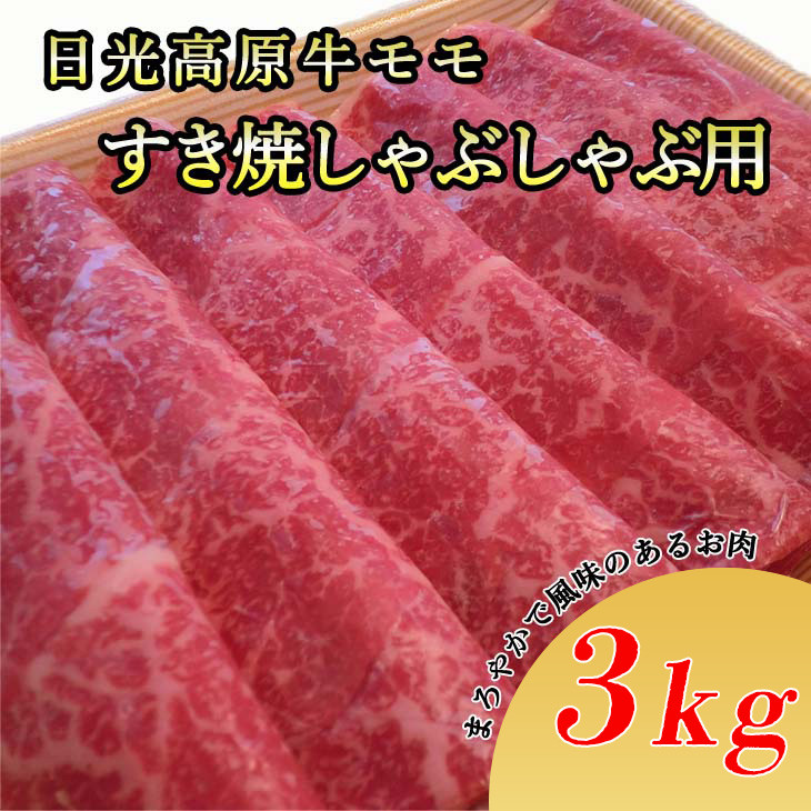 日光高原牛モモすき焼・しゃぶしゃぶ用3kg 肉 すき焼き しゃぶしゃぶ 国産牛 グルメ 栃木県 送料無料 ※着日指定不可