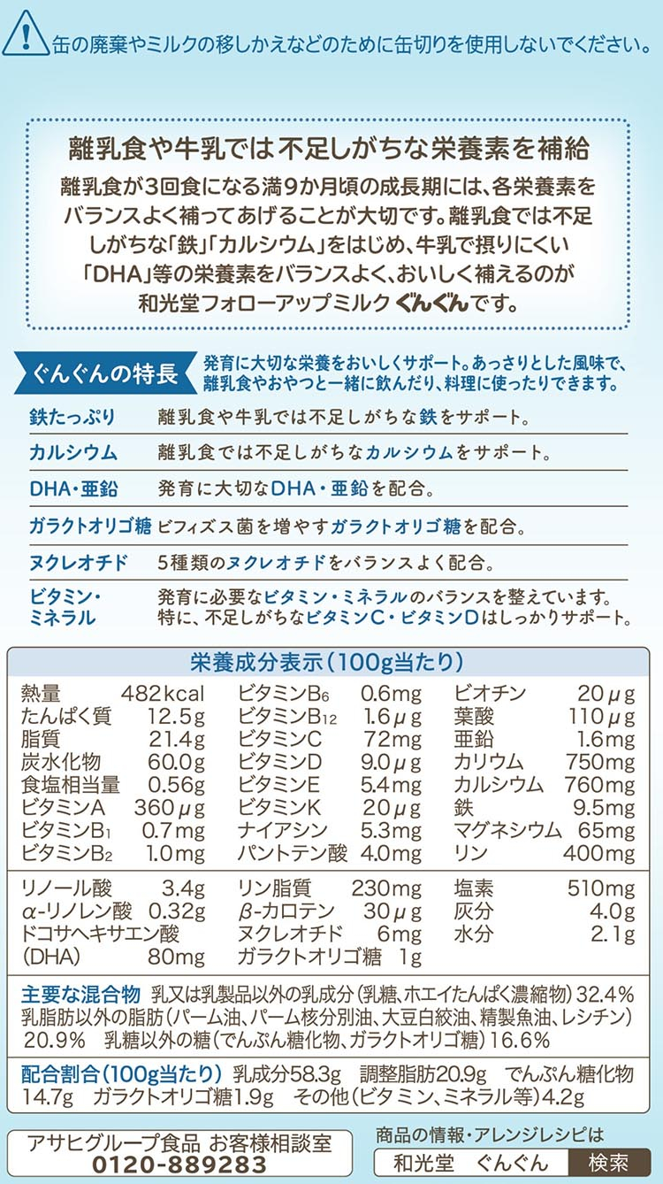 牛乳や食事では不足しがちな栄養をおいしくサポート 「和光堂フォローアップミルク ぐんぐん」 満9か月頃から3歳頃まで ベビーミルク 鉄・カルシウム・DHA配合 830g×2缶 | 離乳食 赤ちゃん 栄養サポート
