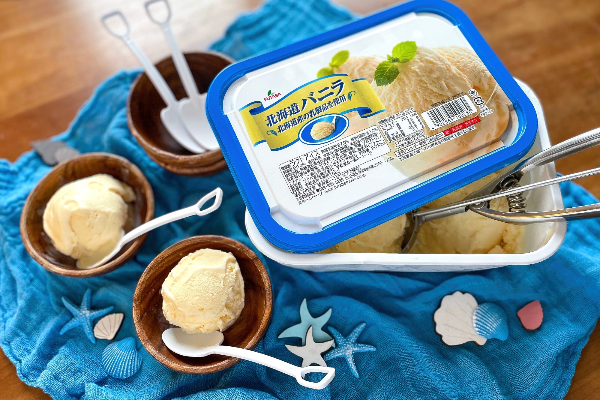 北海道産の乳製品を使用した、後味すっきりで爽やかな味わいの「北海道バニラ」、バニラアイスにチョコソースをマーブル状に混ぜ込んだ「北海道チョコマーブル」のホームアイス2種セットです。