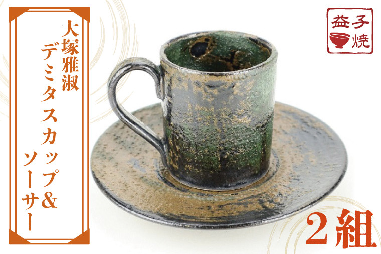 【益子焼】大塚雅淑 デミタスカップ&ソーサー2組|栃木県 益子町 ふるさと納税 益子焼伝統工芸士 大塚雅淑 セット 電子レンジ可 食洗器可(AT002)