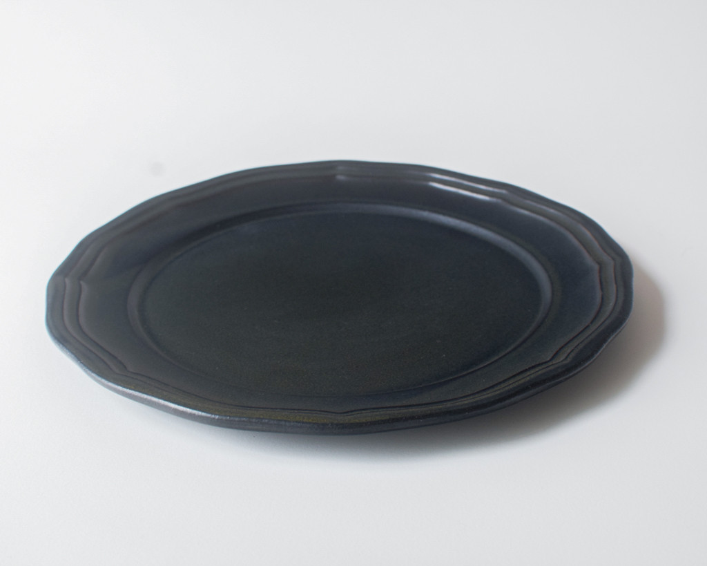 毎日のメイン料理に大活躍の緑に2本のラインが入った大皿と取り皿のセットです。釉薬は艶のない黒マットの大皿と、温かみのある白艶の取り皿です。