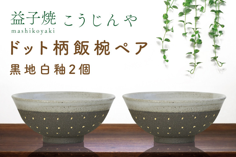 益子町 益子焼 茶碗 伝統 モダン ドット柄 釉薬 器 ペアセット 白 黒 【益子焼】ドット柄飯椀ペア(黒地白釉×黒地白釉)|栃木県 益子町 ふるさと納税 焼き物 お茶碗 ご飯茶碗 ペアセット 手作り レンジ対応可 食洗器対応可(AS002-3)