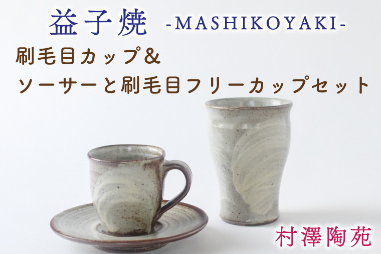 益子焼 コーヒーカップ ソーサー フリーカップ 手作り BV001 刷毛目カップ&ソーサーと刷毛目フリーカップセット