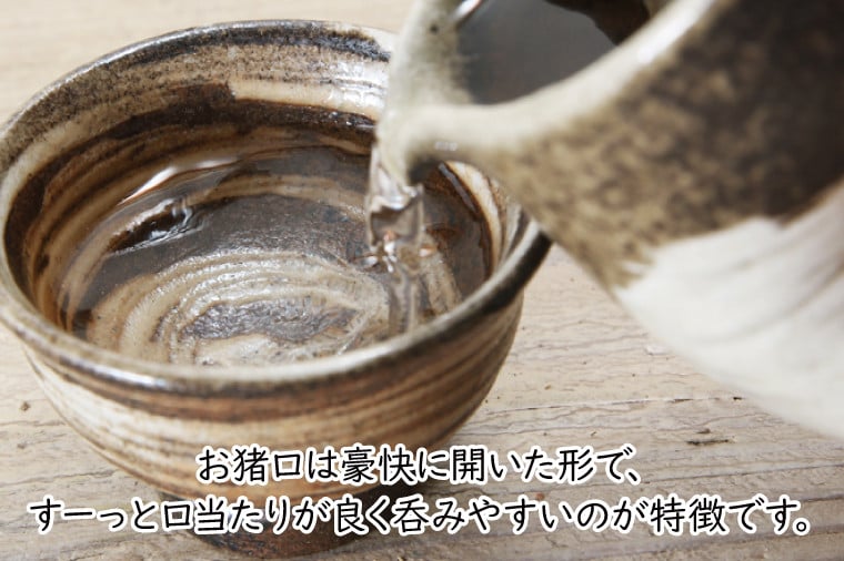 益子焼 片口酒器セット 模様 柄 刷毛目 【益子焼】刷毛目の片口酒器セット(片口1個・お猪口2個のセット)|炭化焼 刷毛目模様 酒入れ お猪口 素朴 陶器 食器洗浄機可 電子レンジ可 オーブン可(BH005)