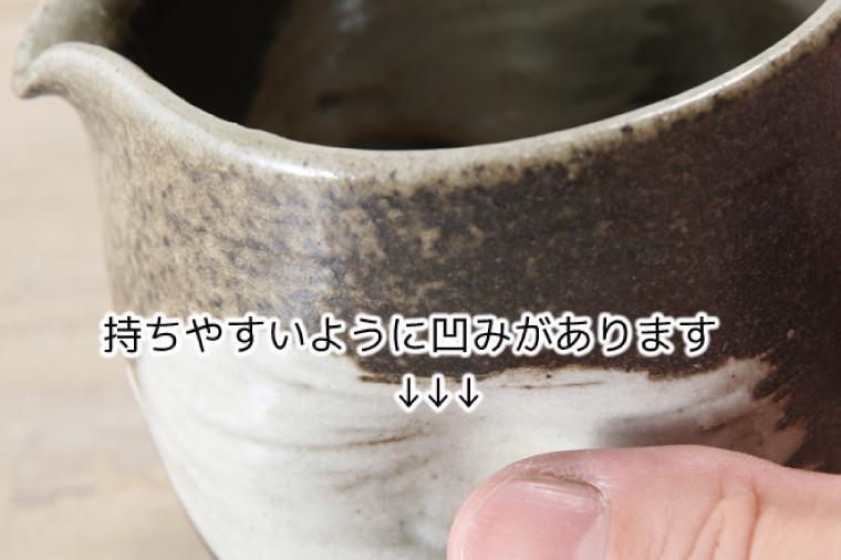 片口に作られた酒入れは、ぽってりとした形で持ちやすいようにくぼみを付けました。