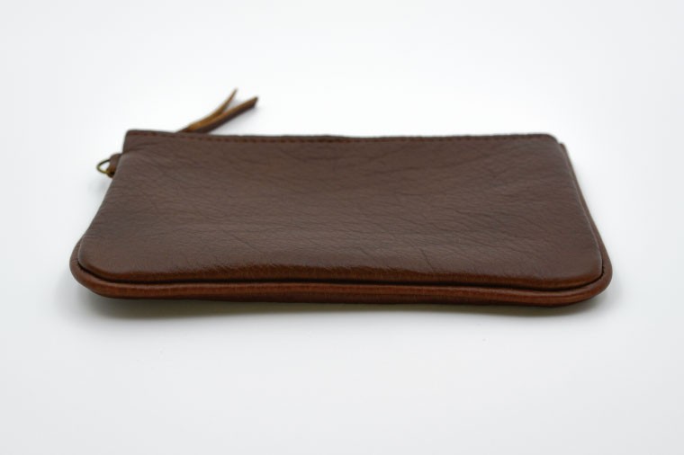 手馴染みのよいソフトな牛革を使用した、通帳が入るサイズのポーチです。
