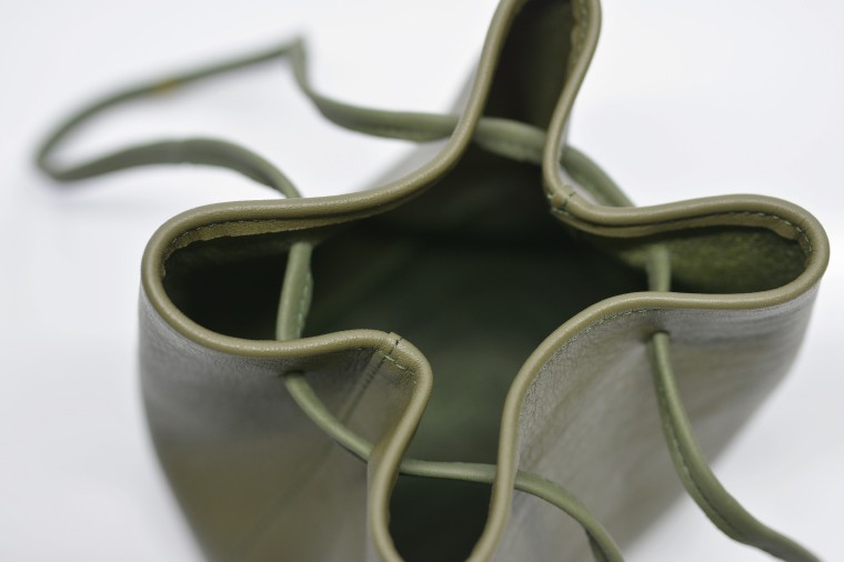 手馴染みのよいソフトな牛革を使用した巾着バッグです。