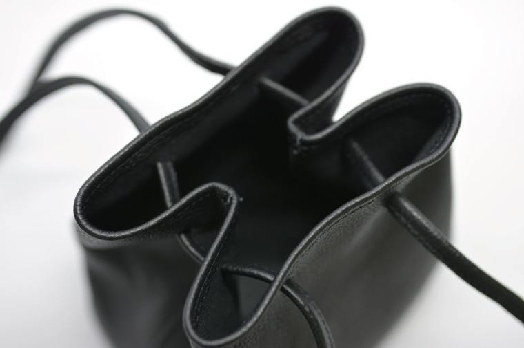 手馴染みのよいソフトな牛革を使用した巾着バッグです。