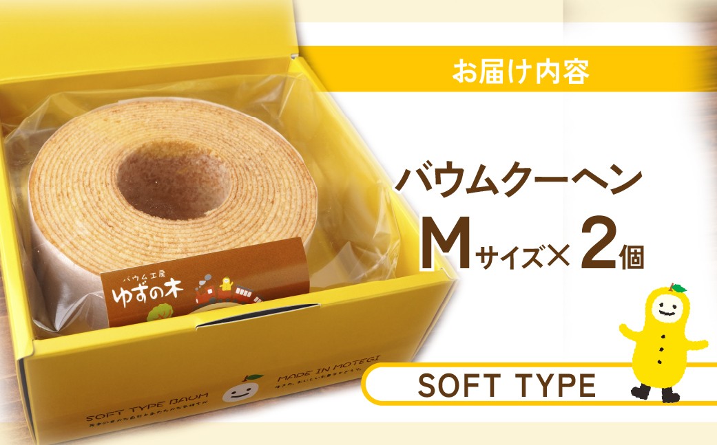 しっとり、もちもち、ふわふわ、米本来の味が楽しめる、飽きのこない美味しさ バウムクーヘン 茂木町産米粉100%使用 ソフト2個(Mサイズ)| バームクーヘン ばうむくーへん バウムクーヘン ばーむくーへん スイーツ 洋菓子 お菓子 ギフト 贈答用 プレゼント 箱詰め 箱入り コシヒカリ 米粉 発酵 バター コーヒー 紅茶 道の駅 もてぎプラザ 栃木県 茂木町