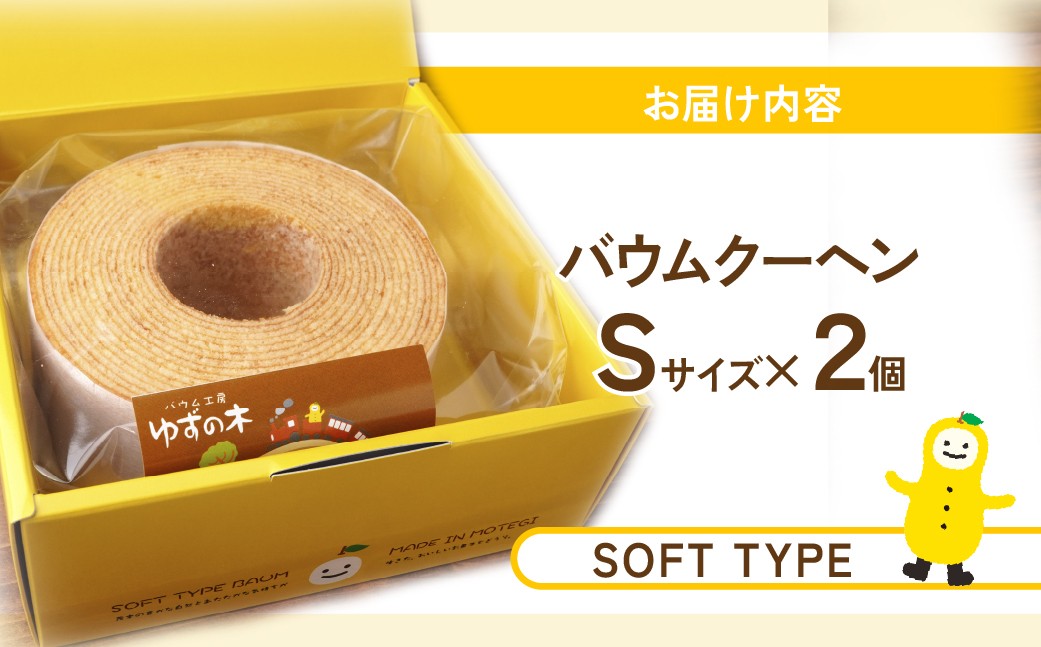 しっとり、もちもち、ふわふわ、米本来の味が楽しめる、飽きのこない美味しさ バウムクーヘン 茂木町産米粉100%使用 ソフト2個(Sサイズ)| バームクーヘン ばうむくーへん ばーむくーへん スイーツ 洋菓子 お菓子 ギフト 贈答用 プレゼント 箱詰め 箱入り コシヒカリ 米粉 発酵 バター コーヒー 紅茶 道の駅 もてぎプラザ 栃木県 茂木町