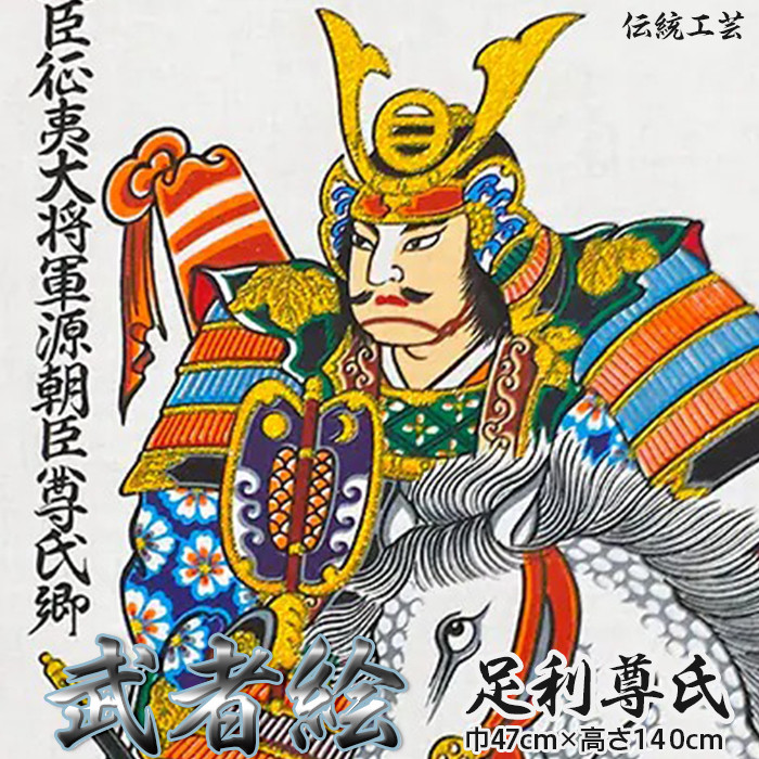 伝統工芸品である武者絵のぼりを室内用にコンパクトに手軽に掛けられるようにしました [伝統工芸]武者絵掛け軸(足利尊氏)140cm≪武者 武士 アート インテリア 壁掛け プレゼント≫