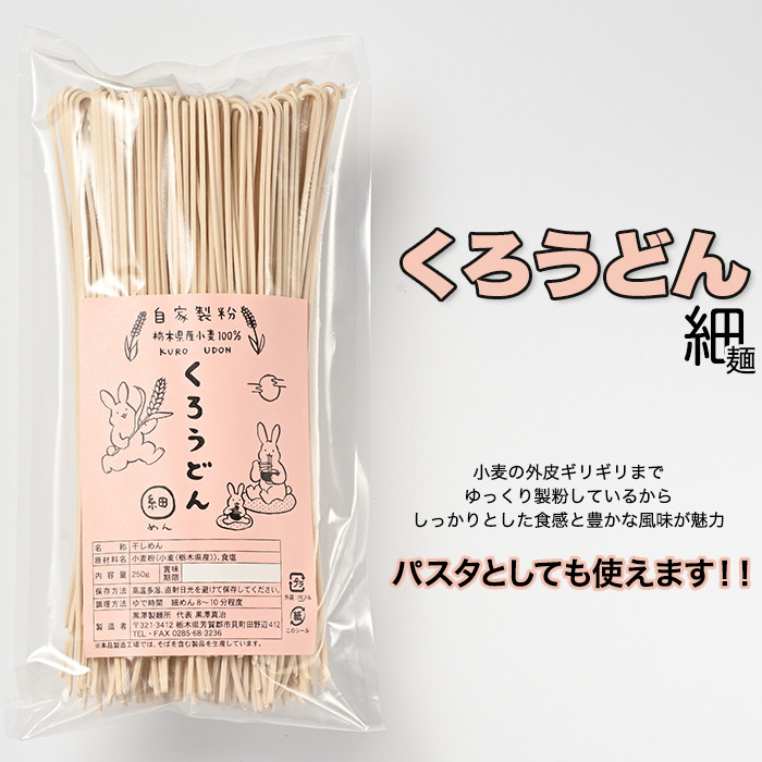 小麦の風味豊かなうどんです。是非ご賞味ください。 くろうどん 細 6束入◇ ≪饂飩 無農薬 栃木県産 小麦≫