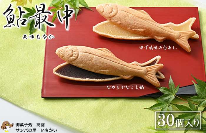100年以上の歴史を誇る片田舎の和菓子屋が真心込めて作った一品 鮎最中 白柚餡&こし餡 30個入り ※離島への配送不可 ※着日指定不可