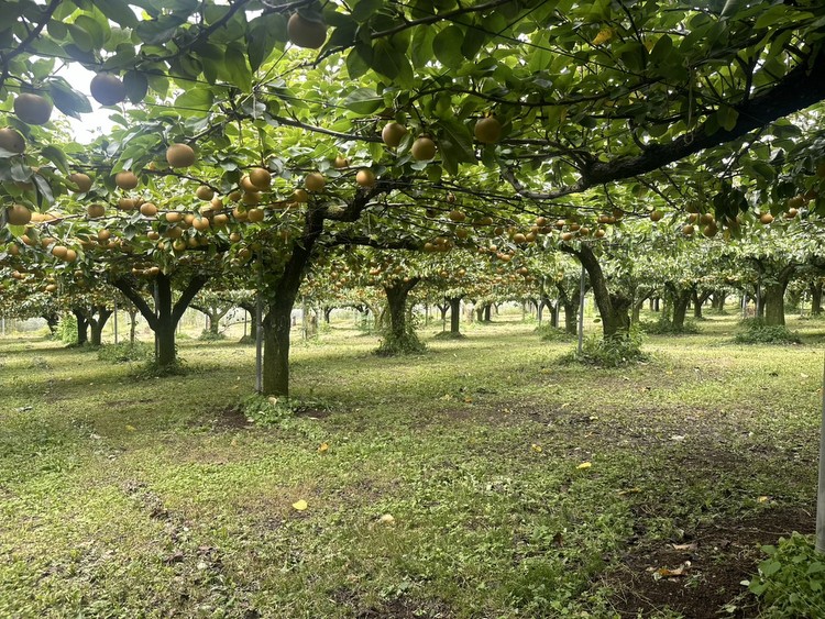 アミノ酸含有の有機肥料をまくことで、光合成した養分がしっかり梨に届くようにこだわっております。