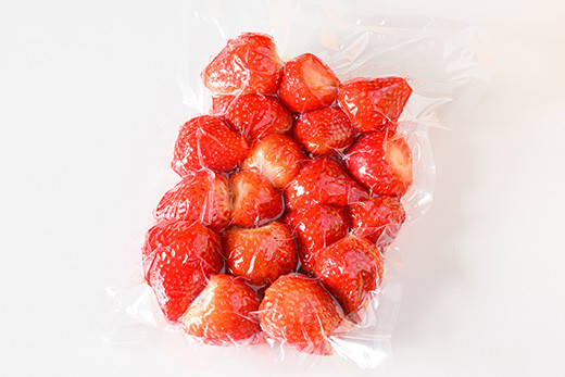 朝摘み、採れたてのいちごを新鮮な状態でその日のうちに冷凍加工しました。