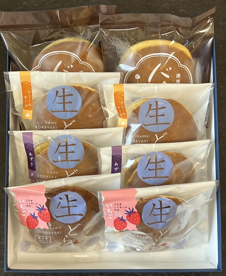 | 容量 | ・生どら焼き(あずき)2個 ・生どら焼き(チーズ)2個 ・生どら焼き(いちご)2個 ・バタまる2個 |