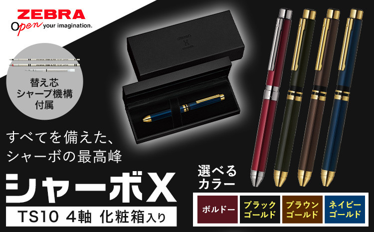 すべてを備えた、シャーボの最高峰 ゼブラ多機能ペン「シャーボX(TS10)」4軸 選べる カラー ブラックゴールド ブラウンゴールド ネイビーゴールド ボルドー ペン zebra 文具 文房具 事務 事務用品 株式会社ナカダ《30日以内に出荷予定(土日祝除く)》栃木県 野木町 学校 勉強 ノート