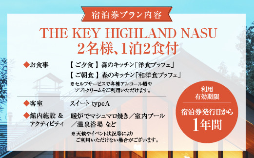 特別な場所で特別なひと時を。 THE KEY HIGHLAND NASU 1泊2食付ペア宿泊券 スイートtypeA(露天風呂付)|スイート 宿泊 旅行 チケット 宿泊券 チケット 旅行 ペア 那須高原 〔P-272〕